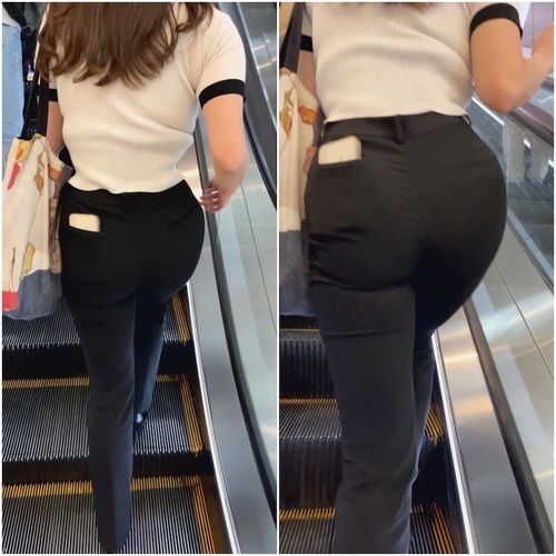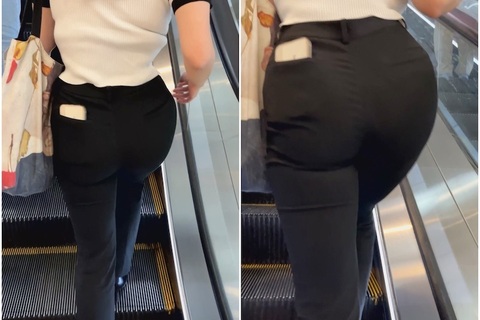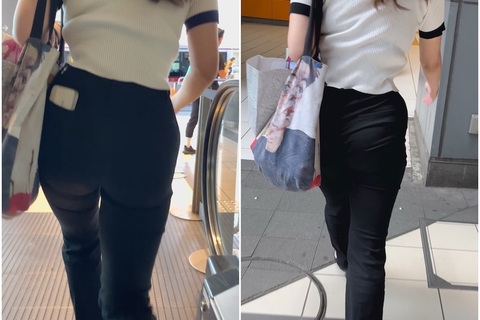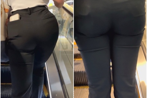 《マシュマロヒップ!美脚に豊満ヒップの黒スラックスOL》