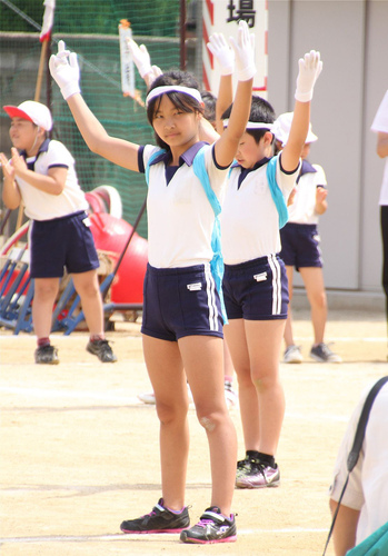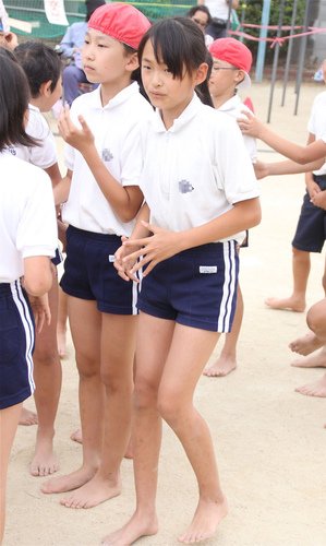 854の続きの応援団娘から別チームの全員裸足騎馬戦の準備のようす。