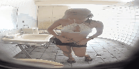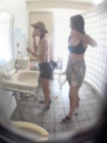 お友達が出ていき、白ブラ娘一人が残ると、短パンと水着を脱ぎ、日焼けの境界線!真っ白なお尻を大公開!!