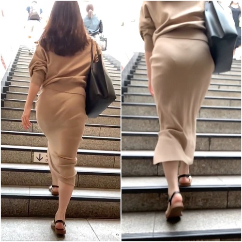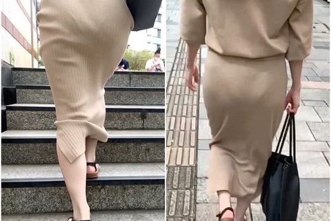 ニット生地の洋服は巨尻の膨らみを露わにする。