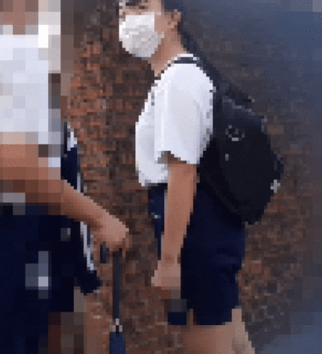 学校前の外でお友達とお喋りしている爆乳少女を撮影しました。半袖半ズボンの体育着姿に合わないデカイ胸はとても良いですね。