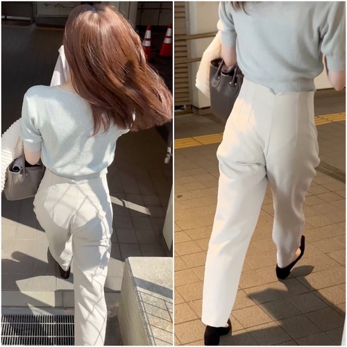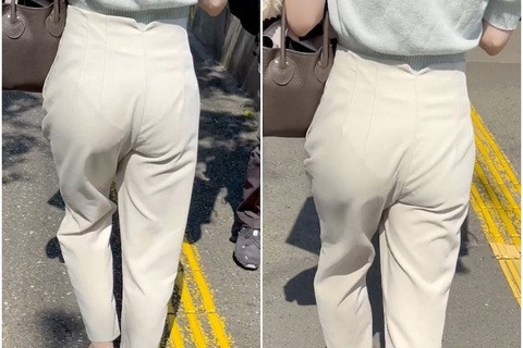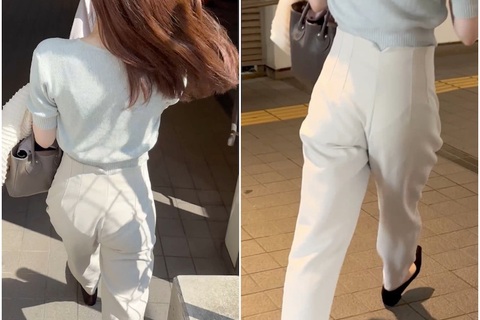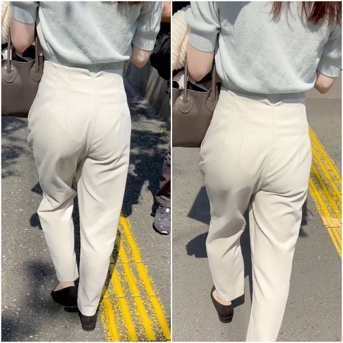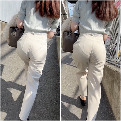 《インテリOL!透け感抜群に美尻を堪能できるベージュスラックスで出勤》