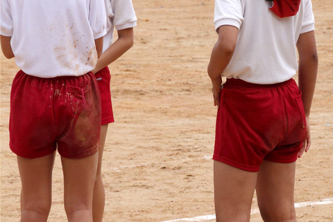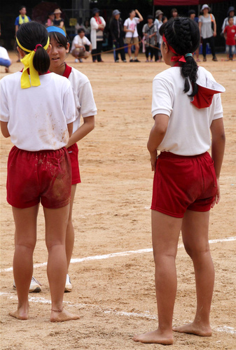 気合の裸足っ娘もいる(というか天気が悪くなりグラウンドが滑るので