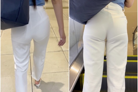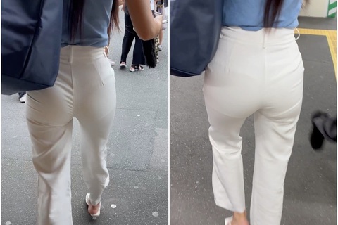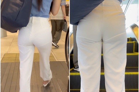 《メッチャ食い込んでません!?絶品BODY美人キャリアウーマンのピチピチ白パンツ》
