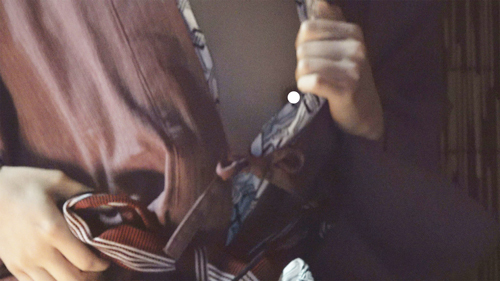 結び直してると浴衣がはだけて乳首が半分見えました