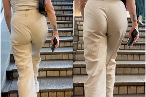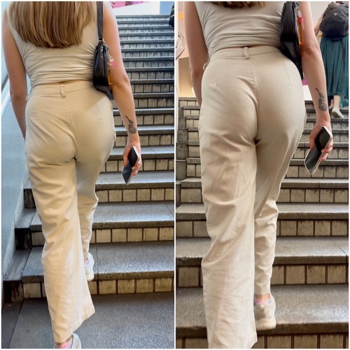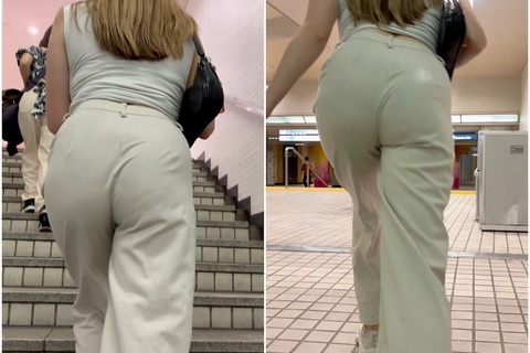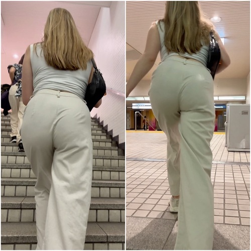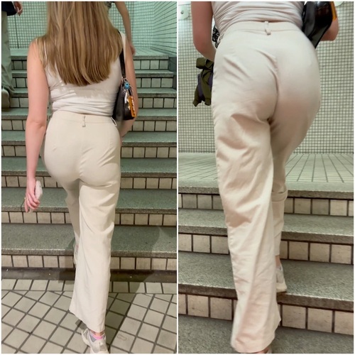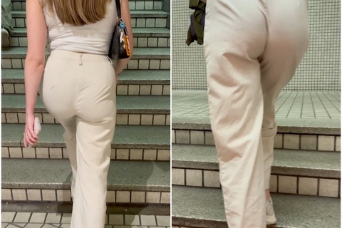 美巨尻が強調される白パンツスタイル。