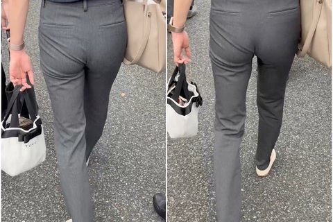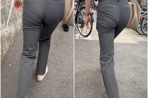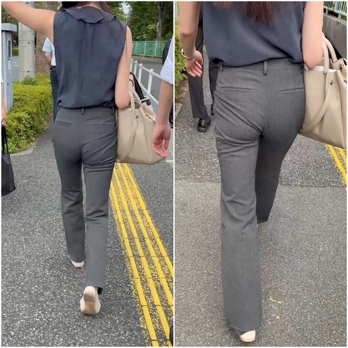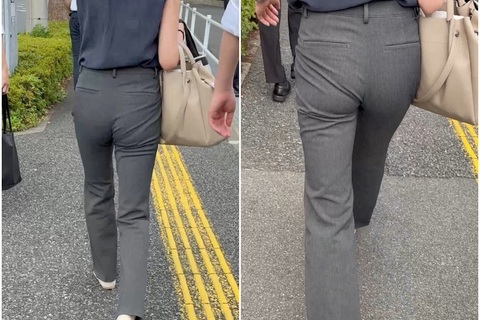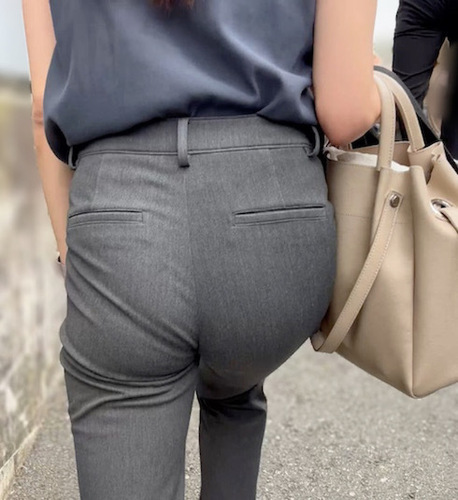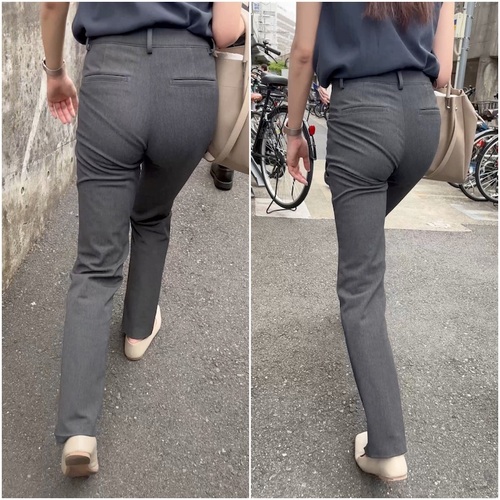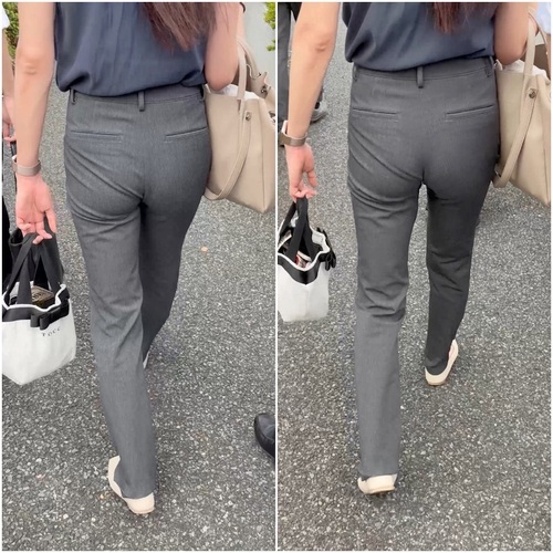 王道のグレースラックスパンツを履き出勤する美人なOL。