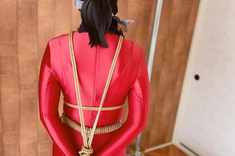 ・赤い全身タイツと手拭い猿轡