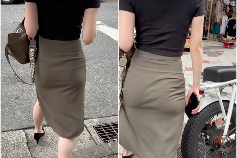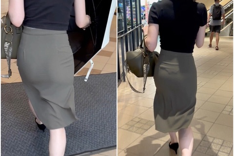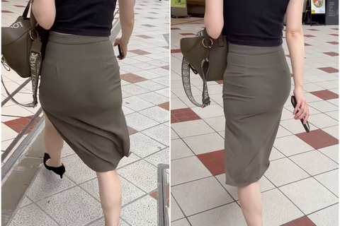 《プルプルが衝撃的!Tバックが浮かび上がるスリットタイトスカート》