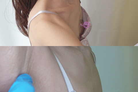 副作用に気を付けて頂く話をしまして、脇を上げてがっつり脇チェックも済みです。