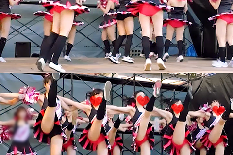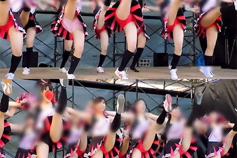 セクシー系チア。黒いハイソックスとスローテンポン妖艶なアンスコ個人撮影