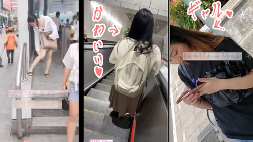 エスカレーターで上から見下ろしながら
