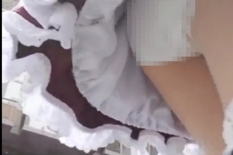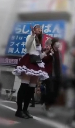 メイドさん達の聖地にて 可愛いメイドコスの子を逆さ撮り