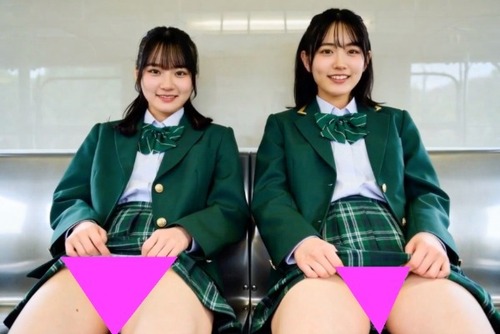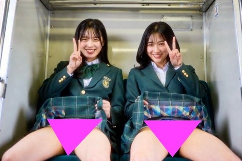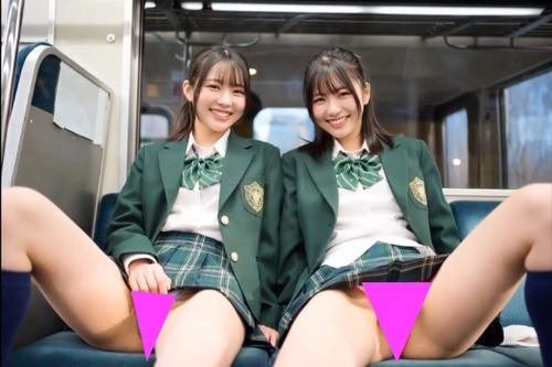 横に並んで座る仲良しコンビが、あなたの視線に気づいてヒートアップ。恥じらいながら裾を上げたり、競い合うように脚を広げて見せたり……。お互いの露出を確認し合いながら、エスカレートしていく淫らな行為。