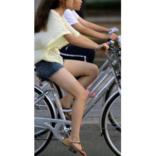 街で見かけた自転車に乗る姿…高く上がった腿など、美脚がいっそう際立ちます。長辺で3600ピクセルかそれ以上の高画質写真が約100枚。