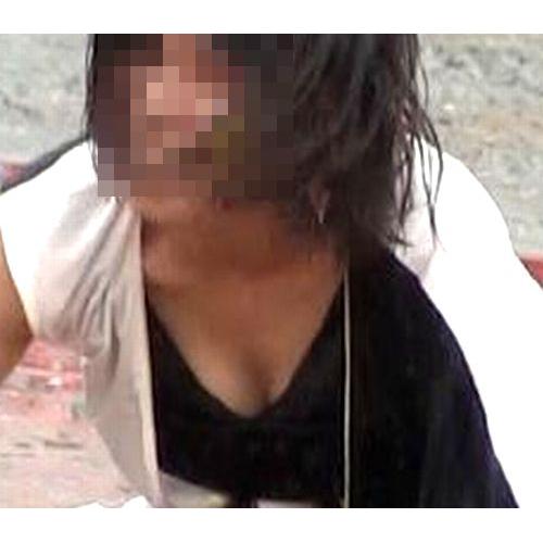 胸元開きすぎでエロ胸ちら♪
