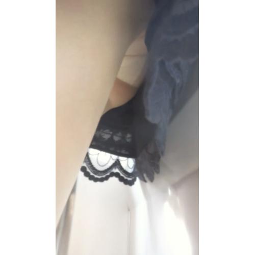 電車の中はさほど混んではいませんでしたが、シートに空席はなかったので彼女はドアのそばのポジションで立ち乗りすることとなりました。これはチャンスです。パンチラを警戒されないよう微妙な間隔を空けて彼女の横にこっそりと立ち、カメラをうまくスカートの中に突っ込みました。しかも撮影はバレていなそうでしたので、次の駅に到着するまでずっとカメラをスカートの中へ突っ込み続けました。