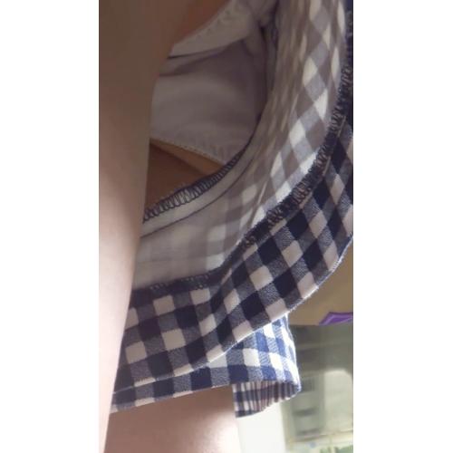青色チェック柄のキュロット系ショートパンツを履いて電車に乗っていました。