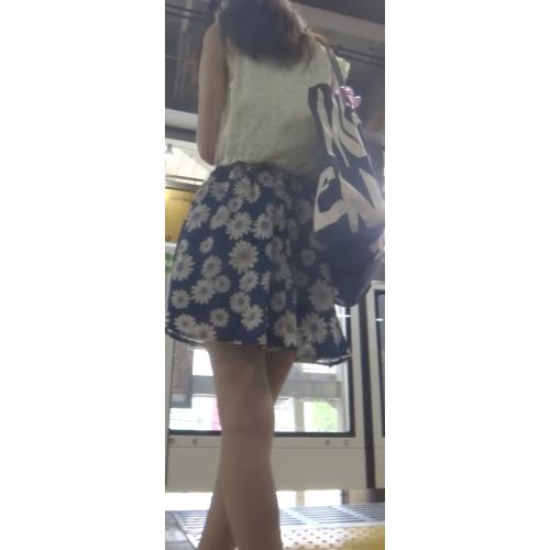 彼女は花柄のミニスカートを履いていました。スカートの丈も短いし、足が長くてスタイルが良さそうです。これはもうスカートの中を狙いに行くしかありません。電車内でスカートの中を撮影することにしました。カメラを準備してチャンスを待ちます。