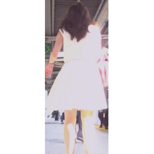 彼女は白いミニスカートを履いていました。パンツが狙えそうなスカート丈です。そこで彼女の後を付けていきながら撮影を開始しました。