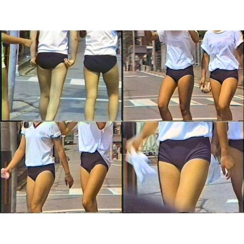 生徒が学校外の公道をブルマ姿で歩いていた映像。校舎とグラウンドの間が一般道なせいです。運転中にこの光景に出会ったら脇見運転をしてしまいそう。