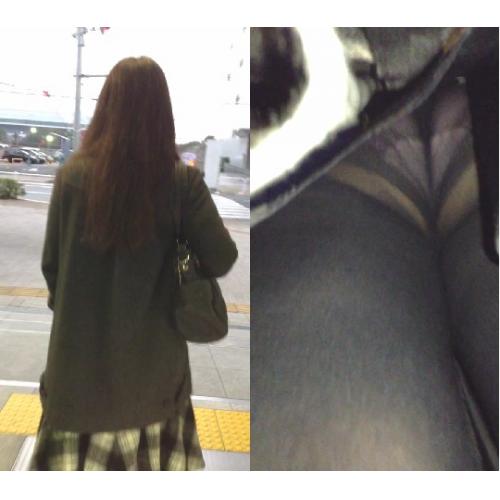 撮影しています。息を殺して背後に潜み、徐々に間合いを詰めてスカートの中身