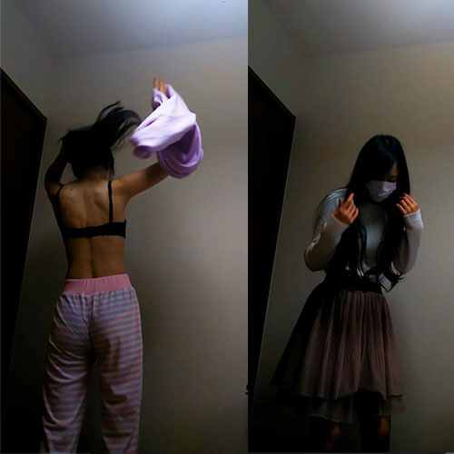 先ずは部屋着のピンクのスウェットから着替えます