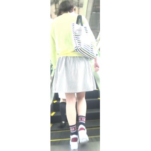 彼女はボーダー柄のミニスカートを履いていました。プリーツがほとんどついていないスカートでしたので、カメラを入れ込みやすそうに感じます。そこでさっそくカメラを準備して撮影を開始です。彼女を追いかけながら機会をうかがいます。