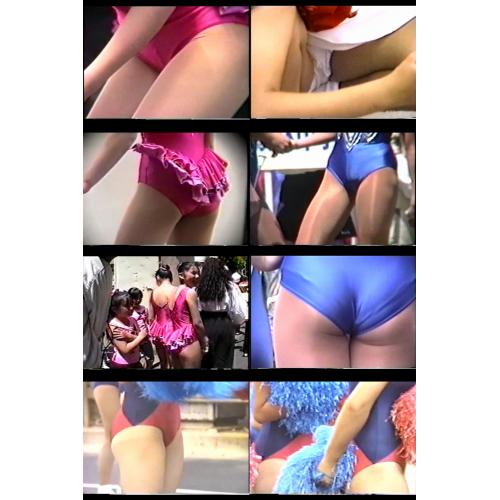 古いビデオからパレード・バトンのレオタード集。今では見られないちょっと際どいコスチューム。太陽の下、光沢素材のレオタ、ひらめくフリル。清楚な色香を演出するショートパンツのシーンも。