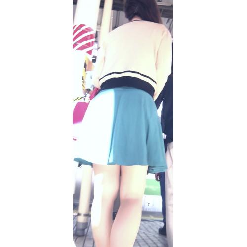 彼女は青緑色のミニスカートを履いていました。しかも足長でなかなかいいスタイルをしています。これはパンツが見たくなってしまいました。さっそくカメラを準備して撮影開始です。彼女を背後から撮りながらスカートの中を仕留めるチャンスをうかがいます。