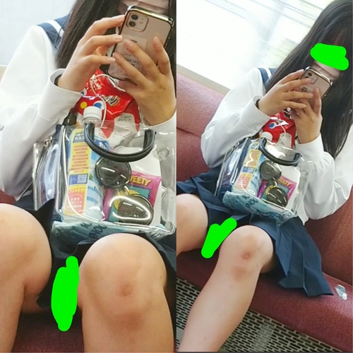 制服学生風お嬢さんの股◯を覗こうと、席を移動し、毎日周囲の目線が気になる、、ううううう、手がつる~イテテテテ、、
