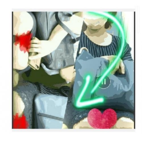電車斜め前お嬢さん発見