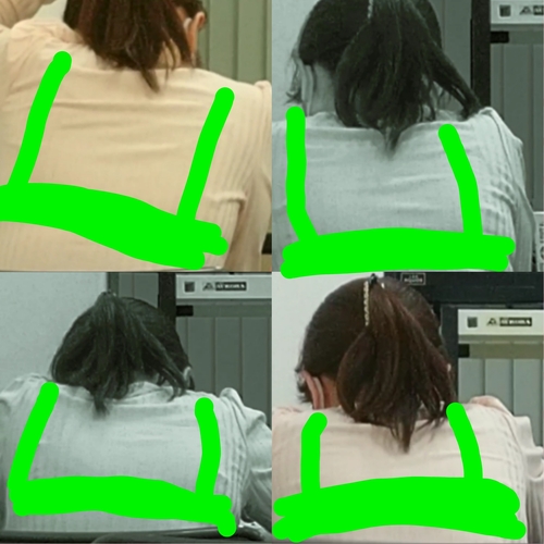 おや?この背中の模様は、、と、、ブラ透け~偵察開始~、、