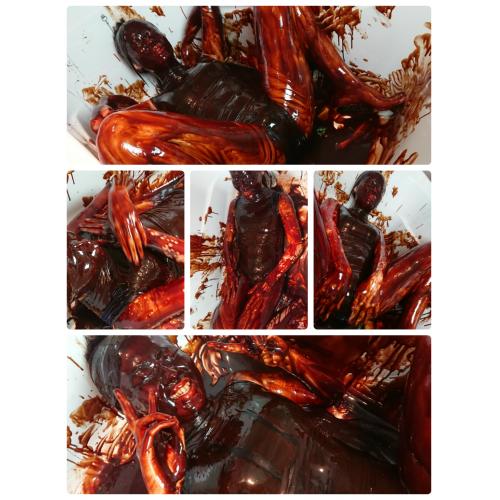 東京、昼間。みんなが働いている時にメッシープレイの撮影。はじめまして!のくりちゃん。今回は水着姿でチョコレートシロップによるメッシー初体験です。とにかく一度体験してみたかった!との事。顔出しはNGですが、楽しんでいる様子が伝わってきます。途中から目隠しをとり顔面から、胸、足までチョコレートシロップを掛けまくり。大きめのおっぱいにチョコレートシロップがかかった様子は光が映りこんですごくエッチ。横たわって掛けられて、自分でも掛けて。お口の中やあそこにチョコレートシロップが垂れて行く様子をアップで撮りました。スクール水着とチョコレートシロップの汚れ具合や光の反射具合がものすごくエッチです。メッシー初体験のくりちゃんの映像をお楽しみ下さい。※都会ゆえ、電車の音が聞こえます。収録時間20分