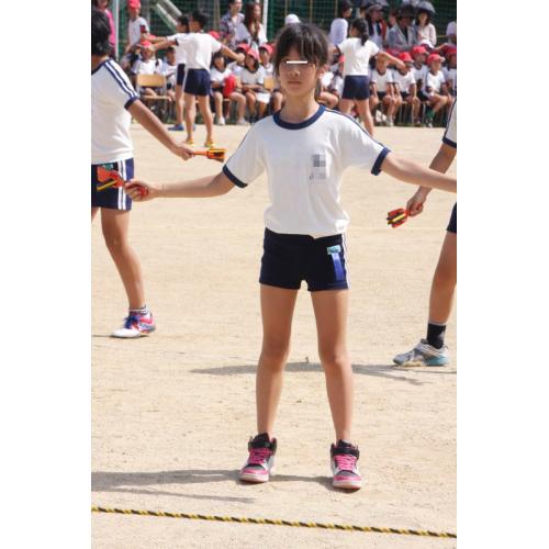 ぴちぴちの体操着からぽっちとしたものが見えております。