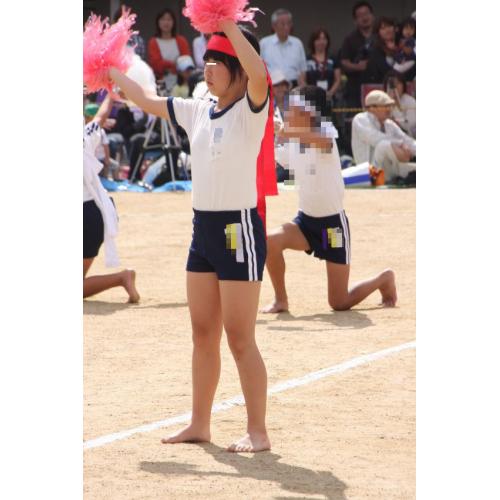 ムチムチボディなのにぴちぴち体操着の紅組応援団娘再び。
