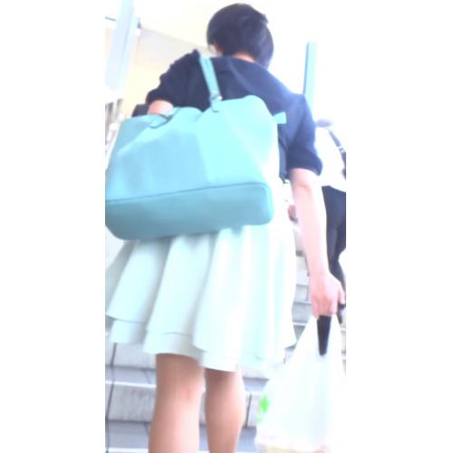 彼女は水色のミニスカートを履いていました。しかも彼女は右手に買い物袋を、左手にはカバンを持っていたので、手でスカートを押さえてパンチラガードができそうもありません。これはうまくやればパンツを撮ることができそうです。そこでカメラを準備して撮影開始です。彼女を尾行しながら撮影チャンスをうかがいます。