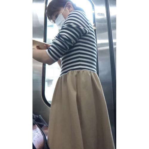 乗った電車はまあまあの混雑具合だったので、このまま彼女に接近して電車内で撮影をやってしまってもバレなそうです。しかも彼女は顔にマスクを付けていましたが、なかなかの美人さんに見えました。これは撮ってやるしかありません。さっそくカメラを準備して撮影開始です。