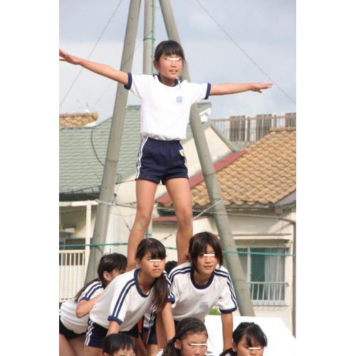 会場を後にしてゆきます。薄生地の体操着が夕日に照らされ