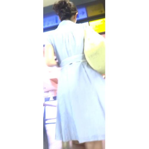 彼女はボーダー柄のワンピースを着ていました。このワンピースはすごくスカート丈が短いわけではありませんでしたが、スカートの中を狙うチャンスはありそうです。すぐさまカメラを準備して撮影を開始しました。そして彼女に後ろから迫っていきます。