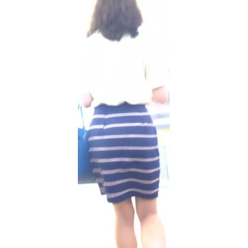 彼女はボーダー柄のタイトなスカートを履いてました。このスカートはタイト過ぎる上に丈がちょっと長かったのでパンツを狙うには難しい感じです。そこで撮るかどうかは置いておき、とりあえずキープということにしてチャンスがあれば狙うことにしました。彼女を後ろから追跡していきます。