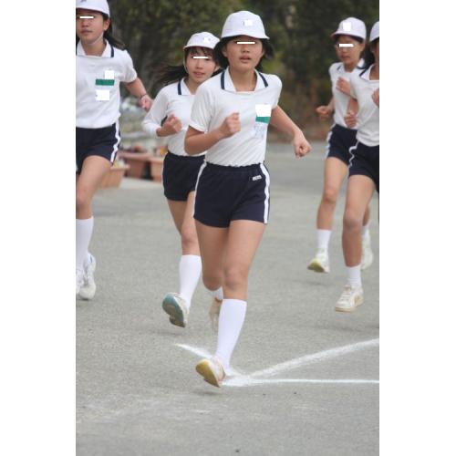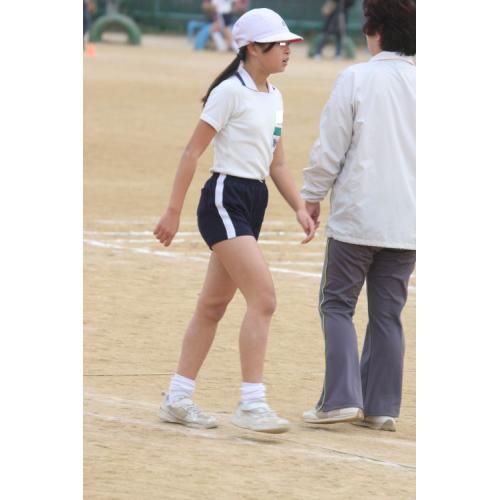しかしピッタリシャツ入れ、ちょっと変わった紺地に白の太い一本線の入った特徴的な短パンに大きなお名前つき体操着、校章の入った赤白帽など着こなしが
