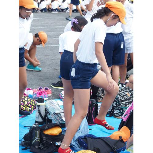 砂を払っていない短パンも登場。