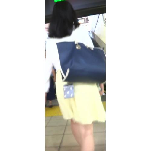 彼女は黄色のミニスカートを履いていました。華奢な感じのスタイルな彼女で足も細身でしたので、スカートと足の間に隙間が大きく開いています。ここにカメラを突っ込めばパンツ丸見えとなりそうです。これは狙わないわけにいきません。すぐにカメラを準備して撮影を開始しました。彼女の後をつけていきながらチャンスをうかがいます。