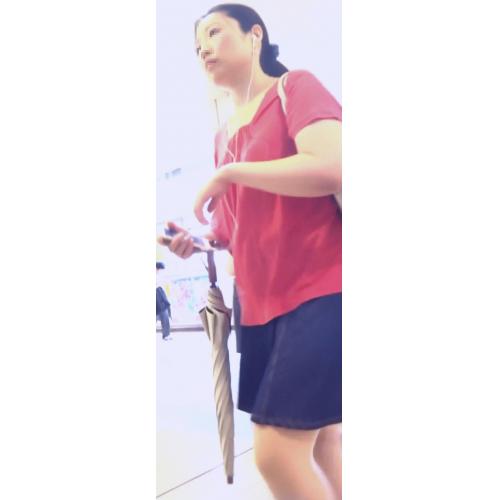 すると彼女は駅のコンコースへ向かう上り階段の方へ向かって行きました。そこで彼女の背後に接近していきます。そして彼女が階段を上るところでスカートの中へカメラを差し込みました。
