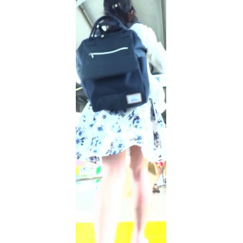 彼女は白いミニスカワンピースを着ていました。スカートのお尻の部分のプリーツがちょうど広がっていたので、ここを目がけてカメラを突っ込めばパンツが撮れそうに見えました。これは狙い目です。すぐにカメラを準備して撮影を開始しました。彼女を後ろから追いかけつつチャンスを待ちます。