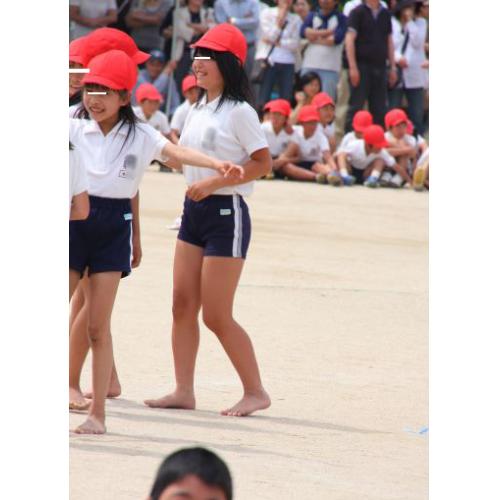 裸足競技が多くて騎馬戦、組体操と何でも裸足。