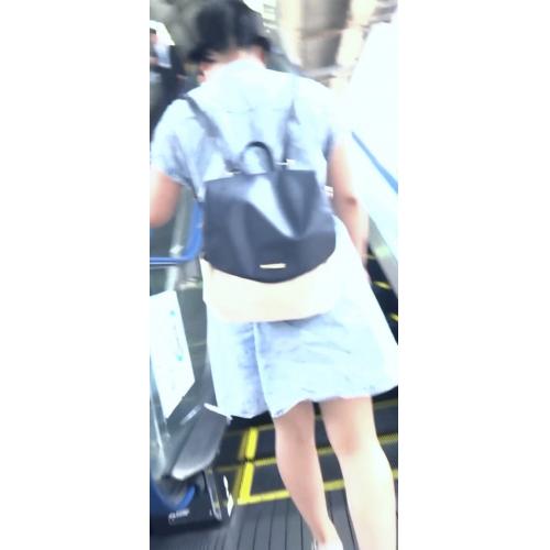 すると彼女は駅の改札へ続いていく上りエスカレーターの方へ向かって行きました。そこで彼女の背後に近づいていきます。そして彼女がエスカレーターに足を乗せたところでスカートの中へカメラを差し込みました。彼女はエスカレーターに乗っている間、右足だけをエスカレーターの一段上に乗せていたので股間の部分が大きく開いて隙間ができていました。そこを目がけてカメラを突っ込んでやりました。