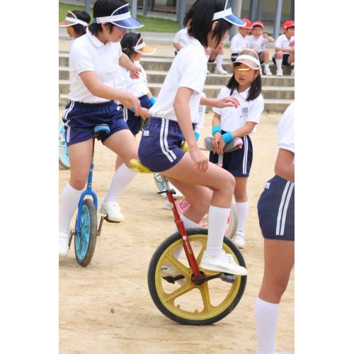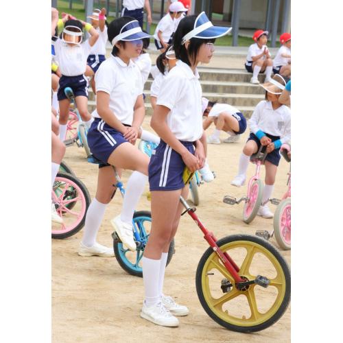 珍しい短パン姿での一輪車披露がメイン。