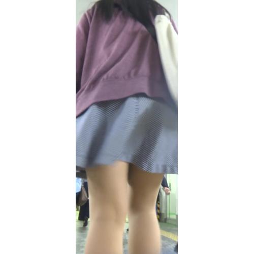 彼女はグレーのボーダー柄ミニスカートを履いていました。プリーツが弱めで裾がひらひらしており、パンツを撮るにはもってこいです。すぐにカメラを準備して撮影を開始しました。
